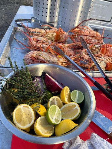 We partner with local fishermen to ensure our products are Sea to table. Don‘t be suprised if you see or Chef loading an ice chest on the dock with FRESH CATCH!