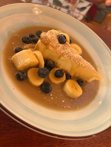 Our signature bananas foster cheesecake may leave you speechless while our peach cobbler skillet, lemon berry pound cake, and crème brûlée simply complete a perfect meal.